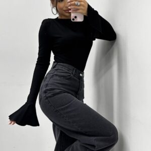 Czarna bluzka z rękawem typu dzwonek – Flared Chic Black