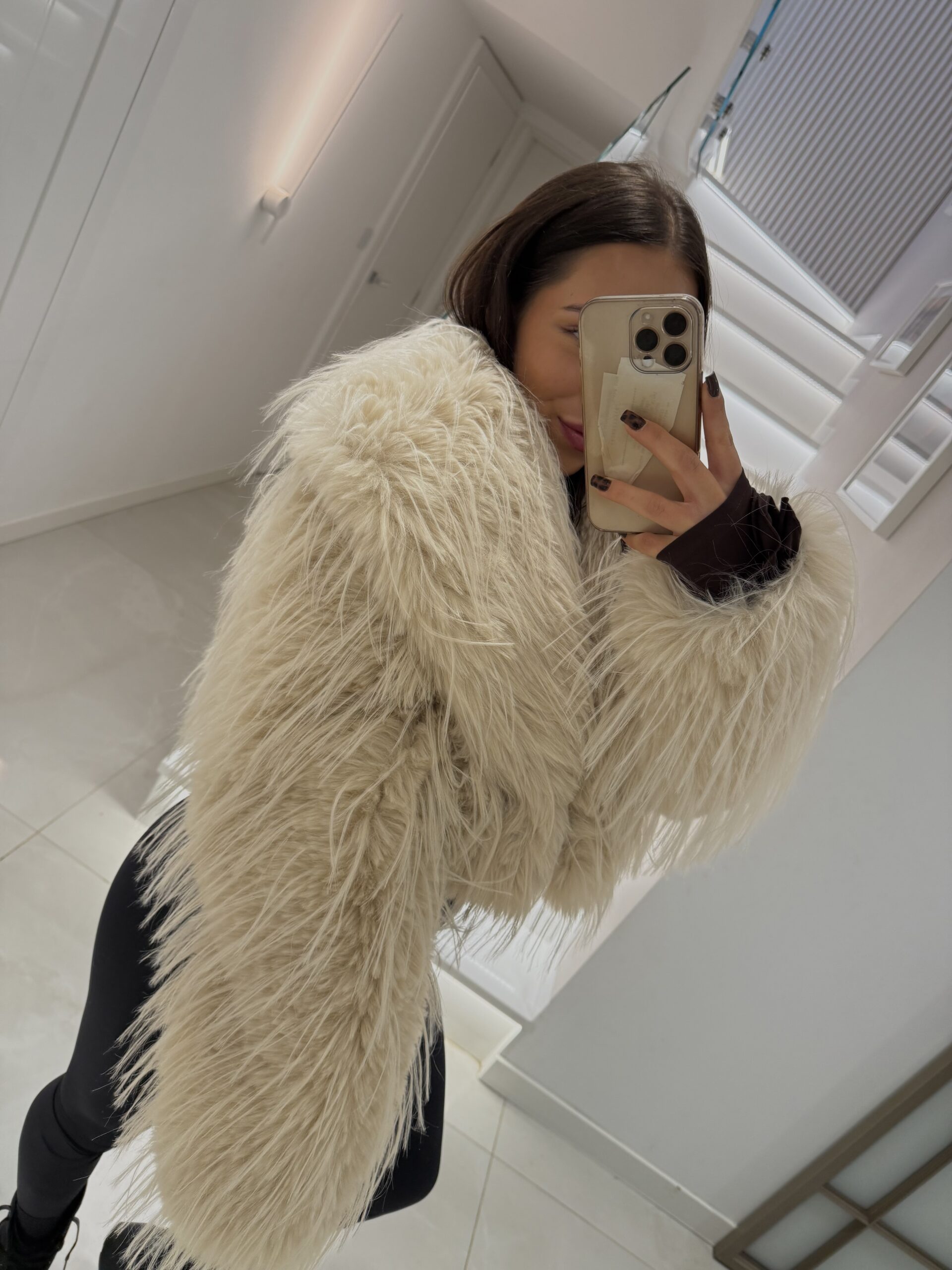 Unsere kurze Felljacke in Cremetönen ist die perfekte Kombination aus Eleganz und Lässigkeit. Weich, flauschig und äußerst angenehm auf der Haut – sie verleiht jedem Outfit Charakter. Tragen Sie sie zu Jeans, Kleidern oder Abend-Looks – sie sieht immer umwerfend aus. ✨