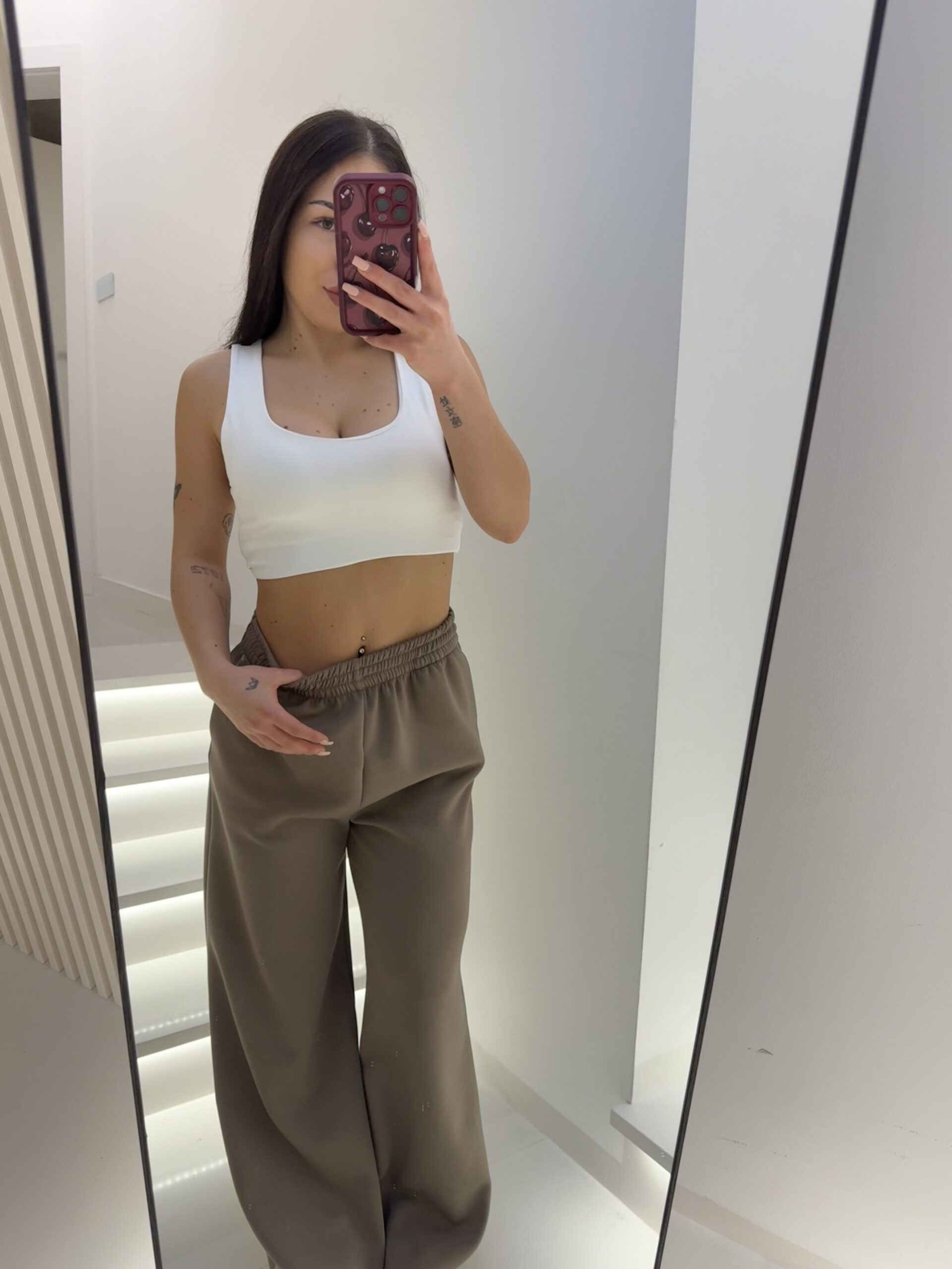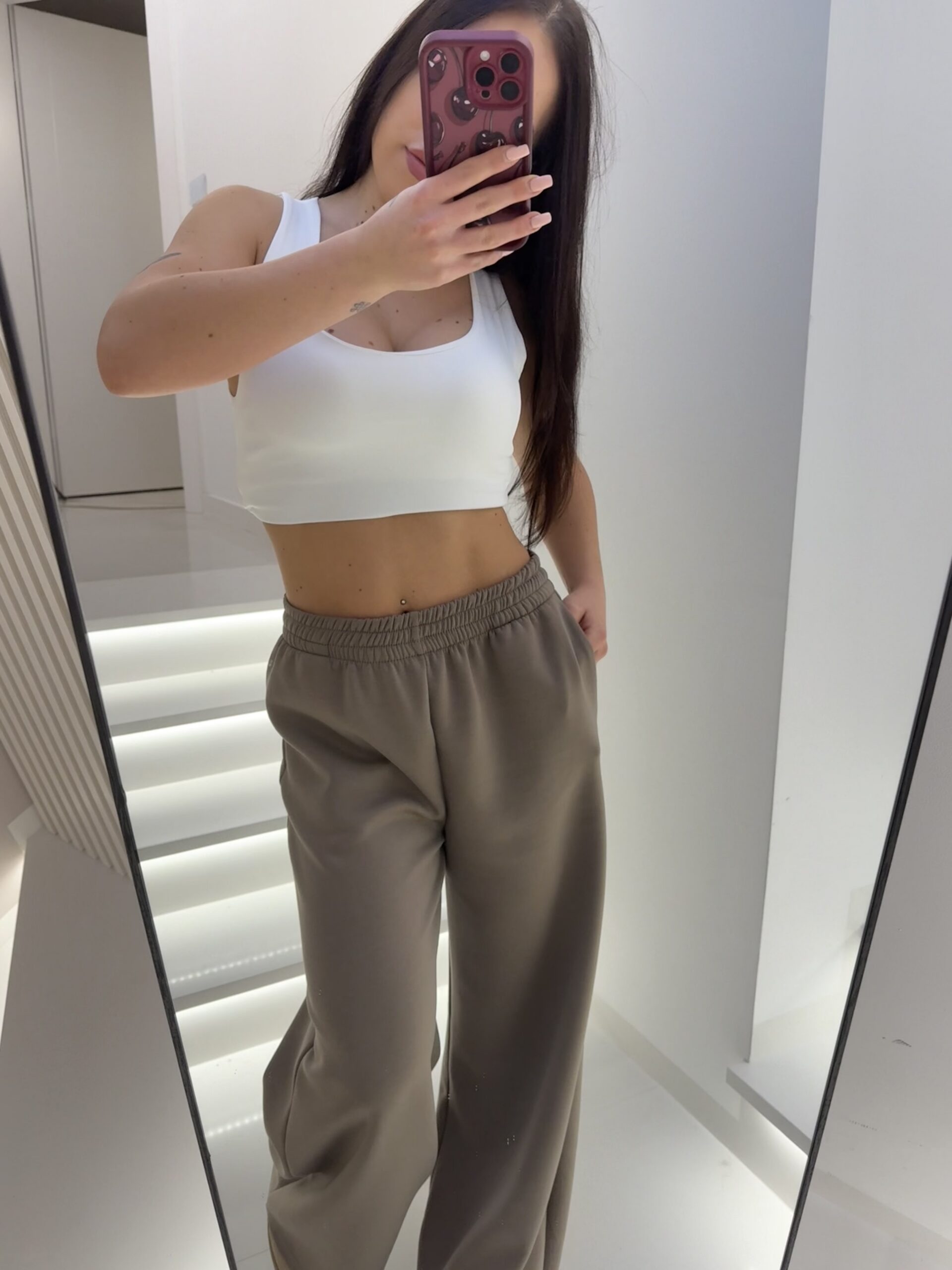 Szerokie, długie spodnie dresowe w odcieniu fango – ciepłym, ziemistym beżu z nutą oliwki. To kolor, który wygląda luksusowo, a jednocześnie naturalnie i ponadczasowo.