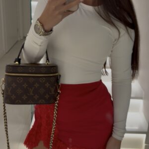 Roter Minirock mit Spitzenbesatz