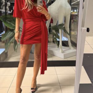 Red Mini Dress with Eye-Catching Ruching and Tie Detail