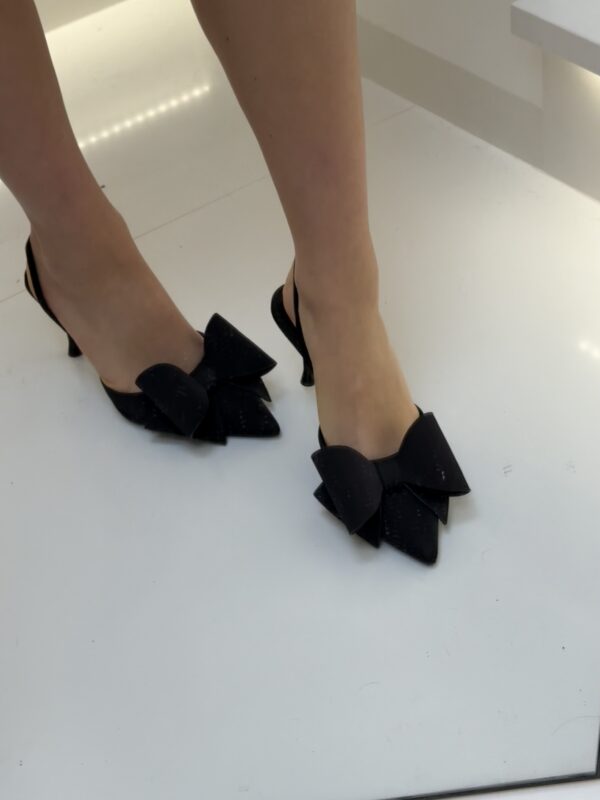 Classic elegance in a feminine, refined edition. These black stilettos delight with a subtle form and a striking bow placed on the front of the shoe, which adds chic and delicacy to the styling. The built-in front shapes the foot beautifully, while the elastic band on the heel ensures comfort and a perfect fit. The slim line and timeless color make this a model that will perfectly complement both elegant styling and modern, fashionable sets.
