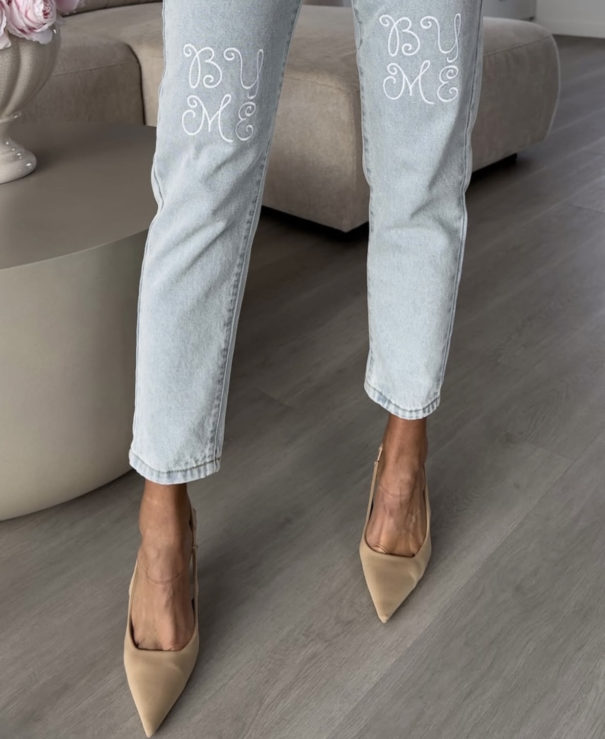 Express your individual style with “BY ME” jeans – this season’s absolute must-have! Made from high-quality, stretchy denim, these jeans guarantee all-day comfort and a perfect fit. The distinctive “BY ME” embroidery on both legs catches the eye and makes these pants unique – a fashion statement for women who love to stand out.