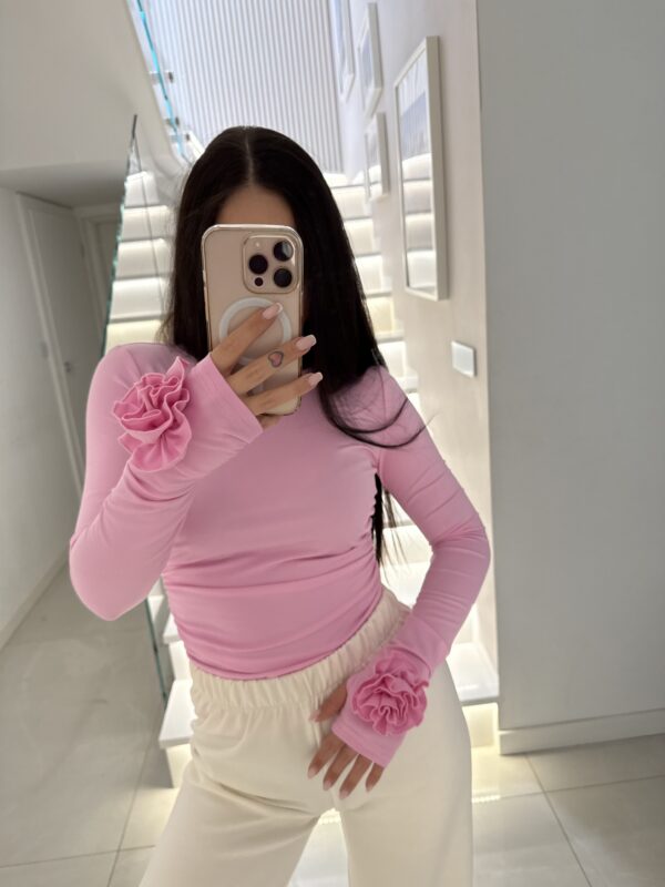 Zjawiskowa bluzka w odcieniu pudrowego różu, która przyciąga spojrzenia subtelnymi, romantycznymi detalami. Dopasowany fason pięknie podkreśla sylwetkę, a efektowne falbanki przy mankietach dodają całości dziewczęcego uroku i elegancji. Miękki, elastyczny materiał zapewnia komfort noszenia przez cały dzień.