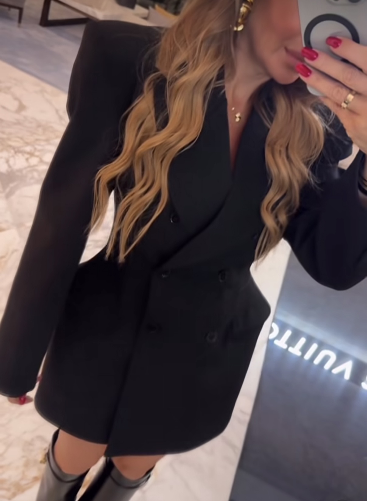 Marynarka, która robi wrażenie od pierwszej sekundy. Dwurzędowy krój z mocniej zarysowaną linią ramion przepięknie podkreśla talię i tworzy efekt „sculpted silhouette”. Wykonana z materiału, który trzyma formę i prezentuje się niezwykle luksusowo.