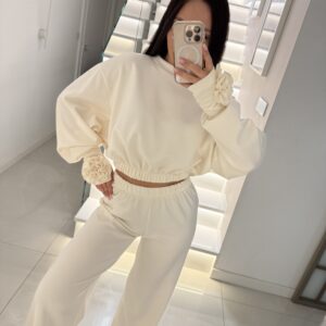 Minimalizm, który robi efekt. Ten komplet z prążkowanej dzianiny łączy dopasowany crop top z długim rękawem i komfortowe bokserki z charakterystyczną czerwoną metką marki Emo. Miękki, elastyczny materiał pięknie układa się na sylwetce i podkreśla proporcje, a krótszy krój bluzki subtelnie eksponuje talię.