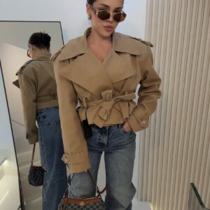 Krótka, bombkowana kurtka vintage w kolorze black, która robi wrażenie nawet zapięta. Ściągacz na dole pozwala na stylowe dopasowanie do różnych looków, a krótki krój idealnie eksponuje sylwetkę. Klasyka w nowoczesnym wydaniu, którą łatwo wystylizujesz na wiele sposobów.